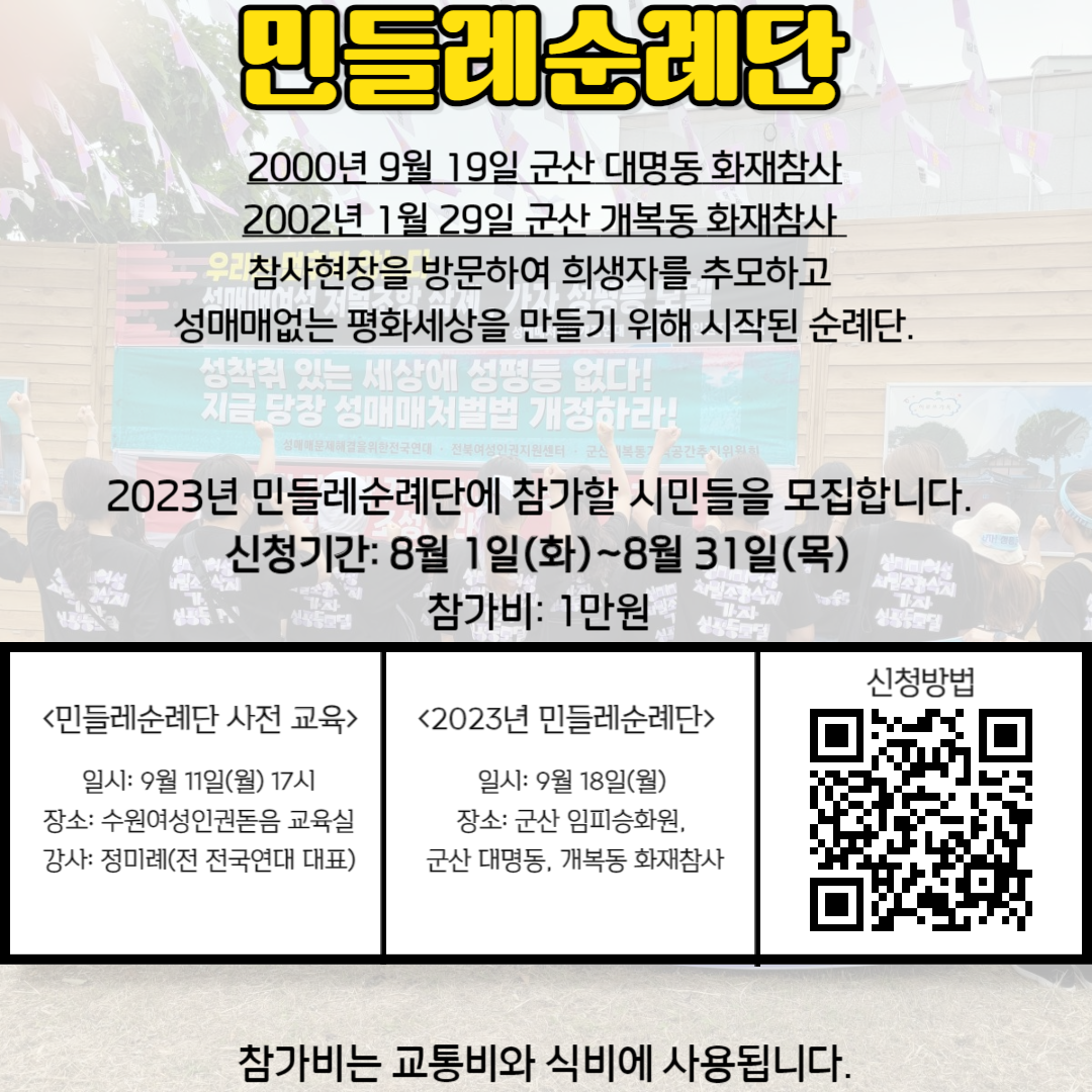 ¼ö¿ø¿©¼ºÀαǵ¸À½°ú ÇÔ²² ¹Îµé·¹¼ø·Ê´Ü¿¡ Âü°¡ÇÒ ½Ã¹ÎµéÀ» ¸ðÁýÇÕ´Ï´Ù.