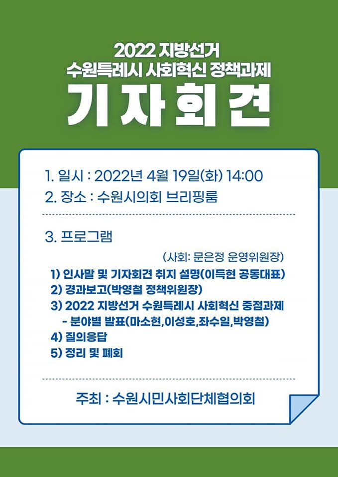 Á¦¸ñ [¿¬´ë] 2022 Áö¹æ¼±°Å ¼ö¿øÆ¯·Ê½Ã »çȸÇõ½Å Á¤Ã¥°úÁ¦ ±âÀÚȸ°ß