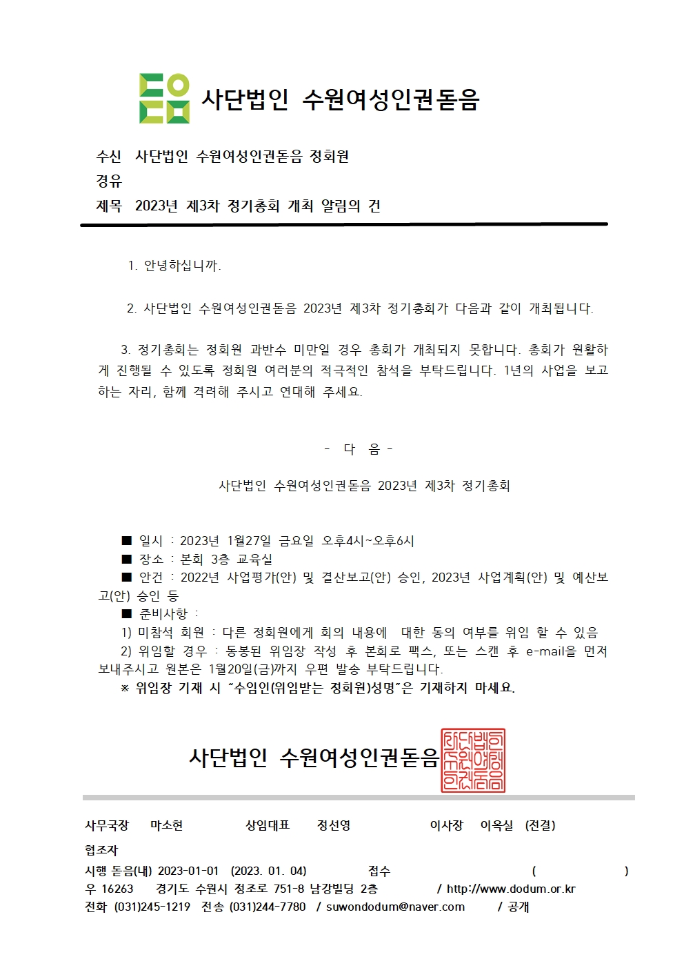 2023³â Á¦3Â÷ Á¤±âÃÑȸ °³ÃÖ ¾Ë¸²ÀÇ °Ç