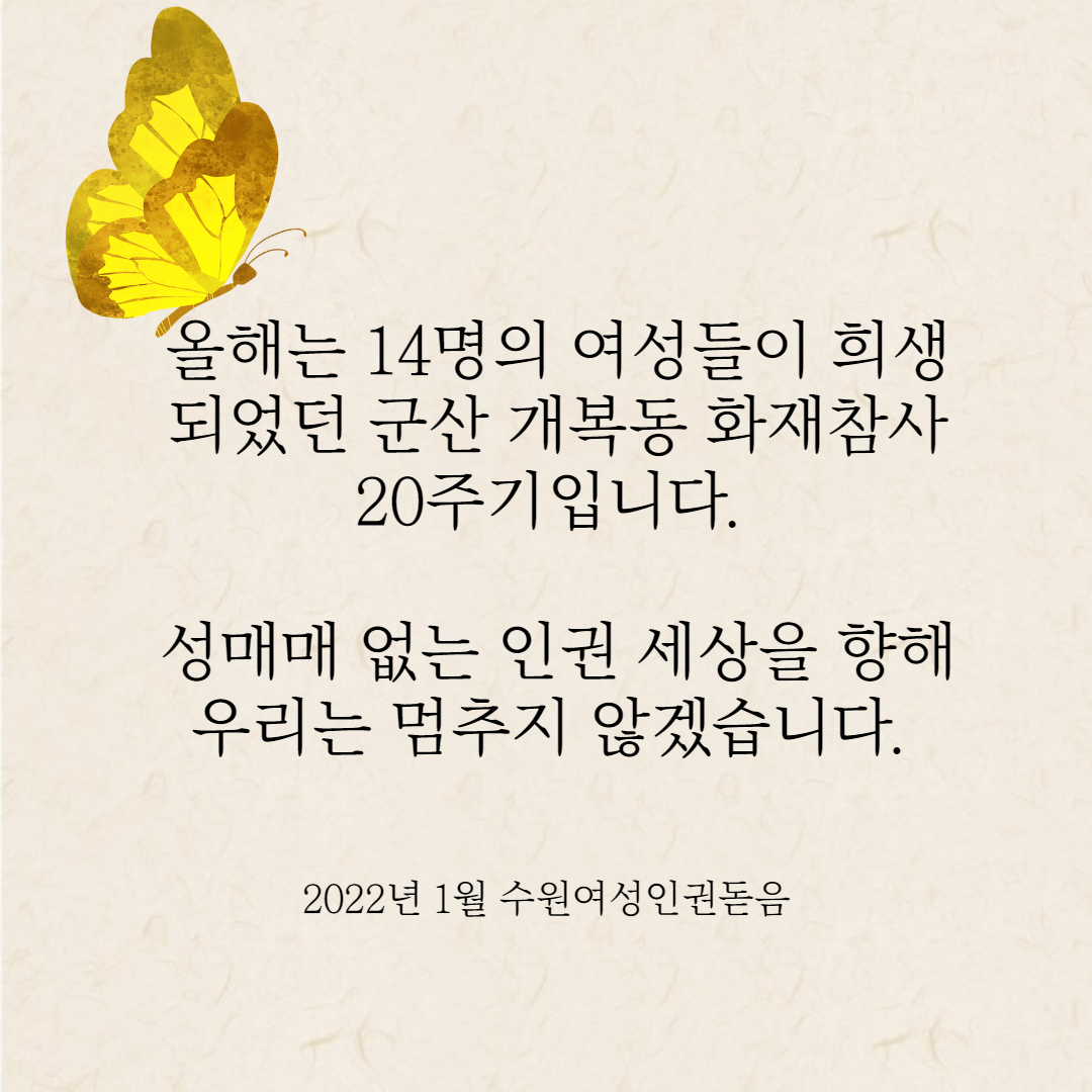 ¿ÃÇØ 2022³âÀº 14¸íÀÇ ¿©¼ºµéÀÌ Èñ»ýµÇ¾ú´ø ±º»ê °³º¹µ¿ ÈÀçÂü»ç 20ÁÖ±âÀÔ´Ï´Ù.