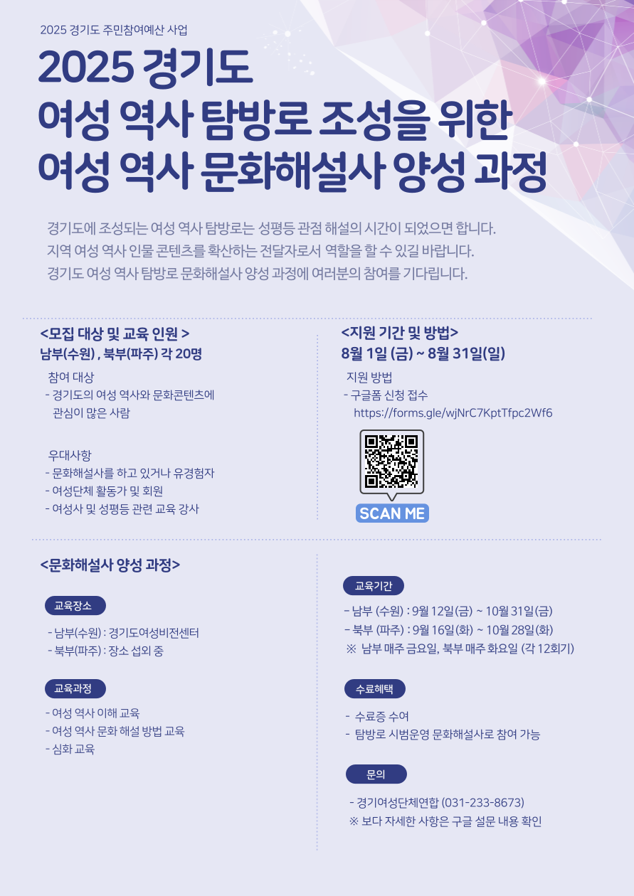 <°æ±âµµ ¿©¼º¿ª»ç ޹æ·Î Á¶¼ºÀ» À§ÇÑ ¿©¼º¿ª»ç ¹®ÈÇØ¼³»ç ¾ç¼º°úÁ¤ Âü°¡ÀÚ ¸ðÁý>